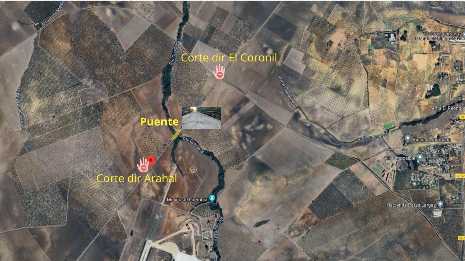 En las siguientes imágenes se puede observar el estado actual del puente, además de su localización.