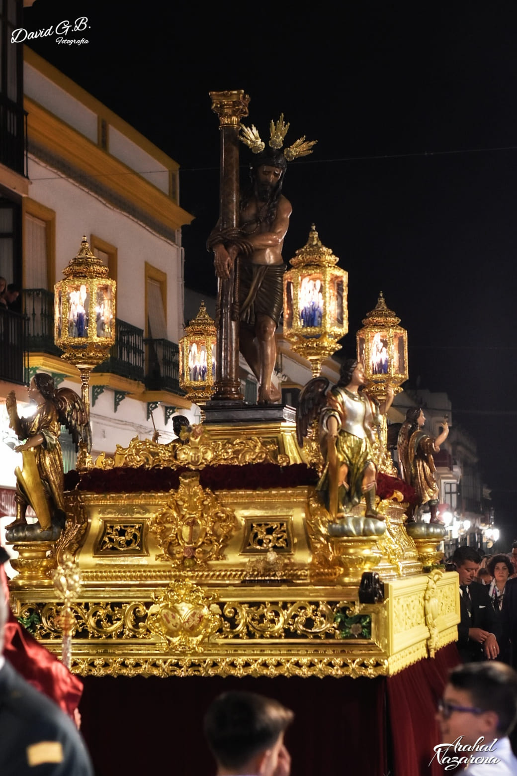 Itinerario: Salida (04:45h), plaza Nuestro Padre Jesús Nazareno, Iglesia, Espaderos, Monjas, Sevilla, Juan Pérez, San Roque, Doctor Gamero, IV Conde de Ureña, Victoria, Pedrera, Miraflores, Puerta Utrera, Victoria, Tahona, Doctor Morillas, Felipe Ramírez, plaza de la Corredera, Duque, San Pedro, Cruz, Madre de Dios, María Beltrán, Morón, Madre de Dios, Pérez Galdós, plaza de la Corredera, Veracruz, Iglesia, plaza de Nuestro Padre Jesús Nazareno y Templo (13:45h)