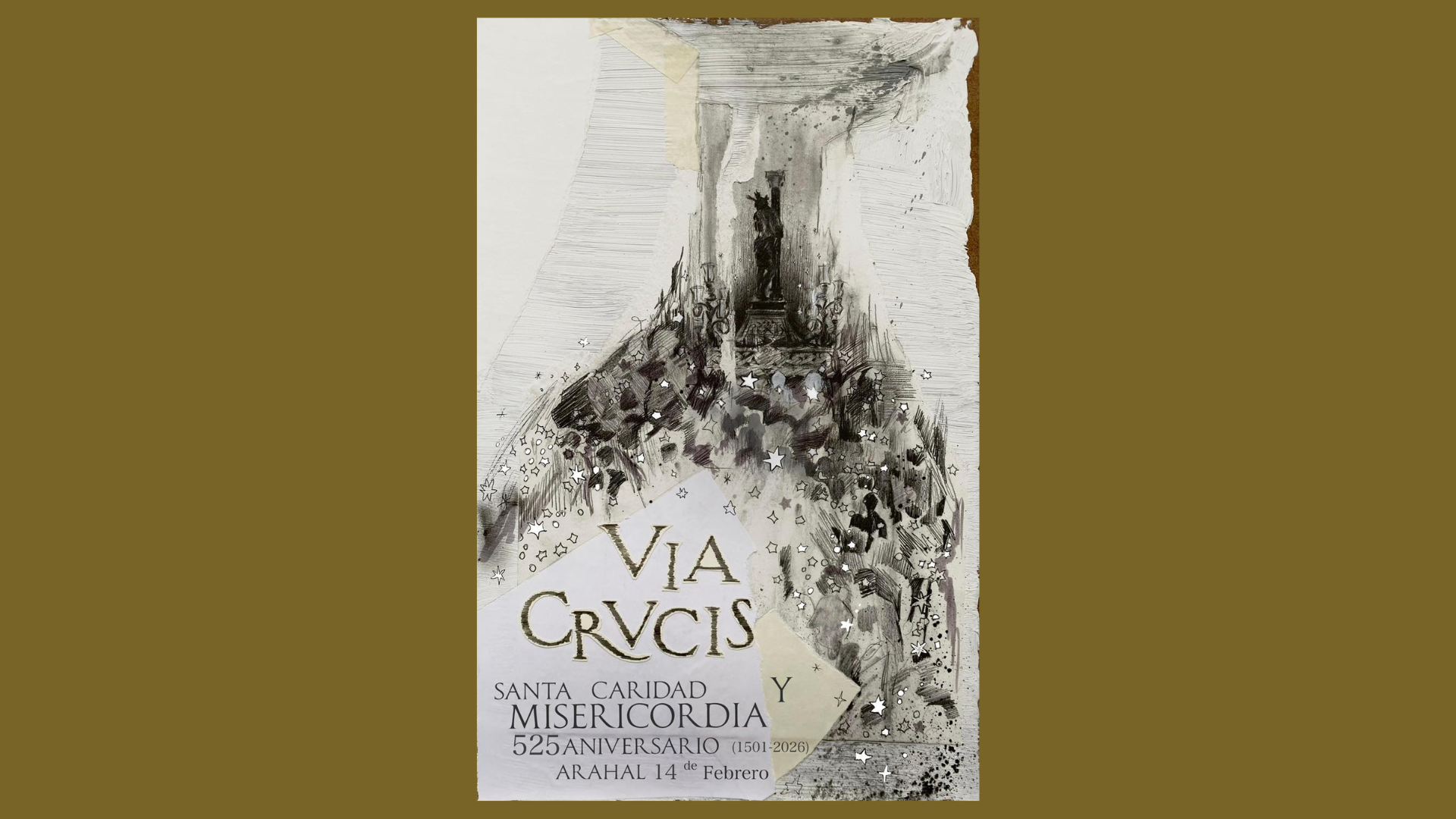 La Hermandad de la Santa Caridad y Misericordia celebrará un Vía Crucis público con el Santo Cristo de la Misericordia con motivo de su 525 aniversario fundacional. El acto piadoso será el sábado 14 de febrero y abarcará un número importante de calles y barrios de la localidad. El cartel anunciador es obra del artista Iván Suazo.